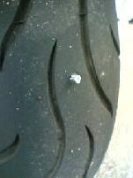 久しぶりにパンクしました。ネジを拾ってしまって、もうグッサリと。