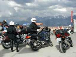 ス)3を南下。氷河特急の発着地としても有名な 山岳リゾート地サンモリッツを目指す。この道 が、なかなかどうして、本格的なワインディング で、多くのスキーリゾートの街を繋ぐ快走路が、 延々70km以上続く。 当然、市街部も通れば、トラックに行く手を阻ま れることもあるが、ドイツ同様にマナーが確立 されており、まったくストレスを感じることはな い。自分のペースで安全に走れば良いだけで ある。サンモリッツからCH29でさらに南下、イタ リアへと国境を越える。ここでは、大陸内の国 境越えで初めてパスポートと車検証の提示が 求められた。問題もなく、しかもパスポートに印 までもらって、少し上機嫌でイタリア入り。 しかし、イタリア入りして驚いたのは、ライダー、ドライバーのマナーが変わった事。ドイツ、スイスで は「マナーは守らなければならない」という雰囲気さえ感じられたのが、イタリアでは、二輪、四輪問 わず、少々強引とも思える追い越しをする者も目に付く。それを咎めようとする雰囲気が感じられな い。もちろん、多数は流れに従って走行しているが、一部には「抜かずにいられない」人々が存在す るという、いかにもラテンな走りに、少々驚かされたのである。