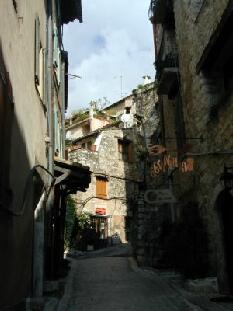 トゥレット シュル ルー(言い難い名前ですね)は、スミレで有名だそうで、鷲巣村の御多分にもれず、崖の上にある、石造りの家と小さな路地の美しい村。平日の朝ということで、観光客も少なく、のんびりした雰囲気と柔かい日差しの中を散歩する。